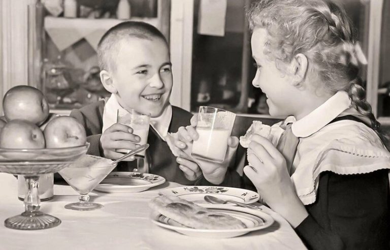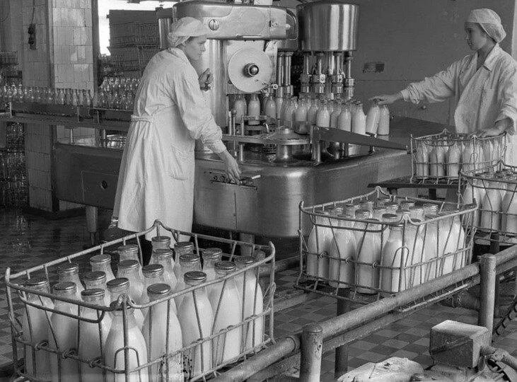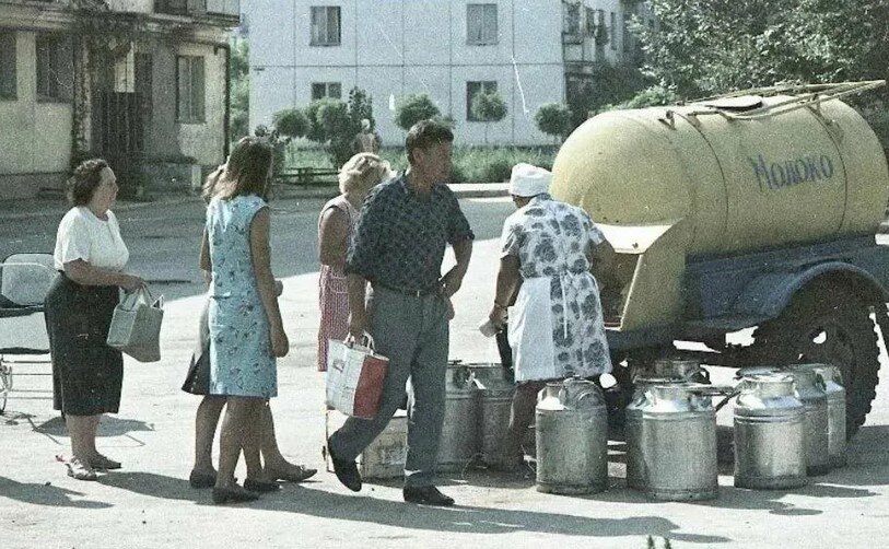 Так что в этот раз поговорим о самом насущном — после хлеба, разумеется. Таким насущным было в советских семьях молоко, его брали практически ежедневно. Три литра на большую семью — это на один день. Посчитайте: кашу утром на молоке сварить всей семье, да и просто попить — а пили с удовольствием, потому что молоко вкусное было.