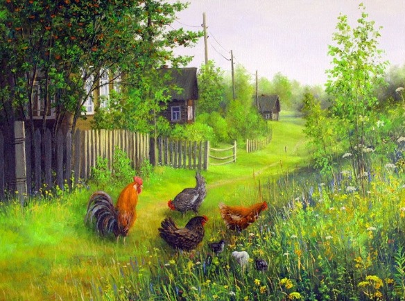 — Такие курицы у вас в городе мелкие. Вот у нас в деревне курицы откормленные. Надо на колхозном рынке кур брать. Завтра съезжу, куплю курицу пожирнее, зарубим её, я её ощипаю и сварю суп. Пальчики оближете!